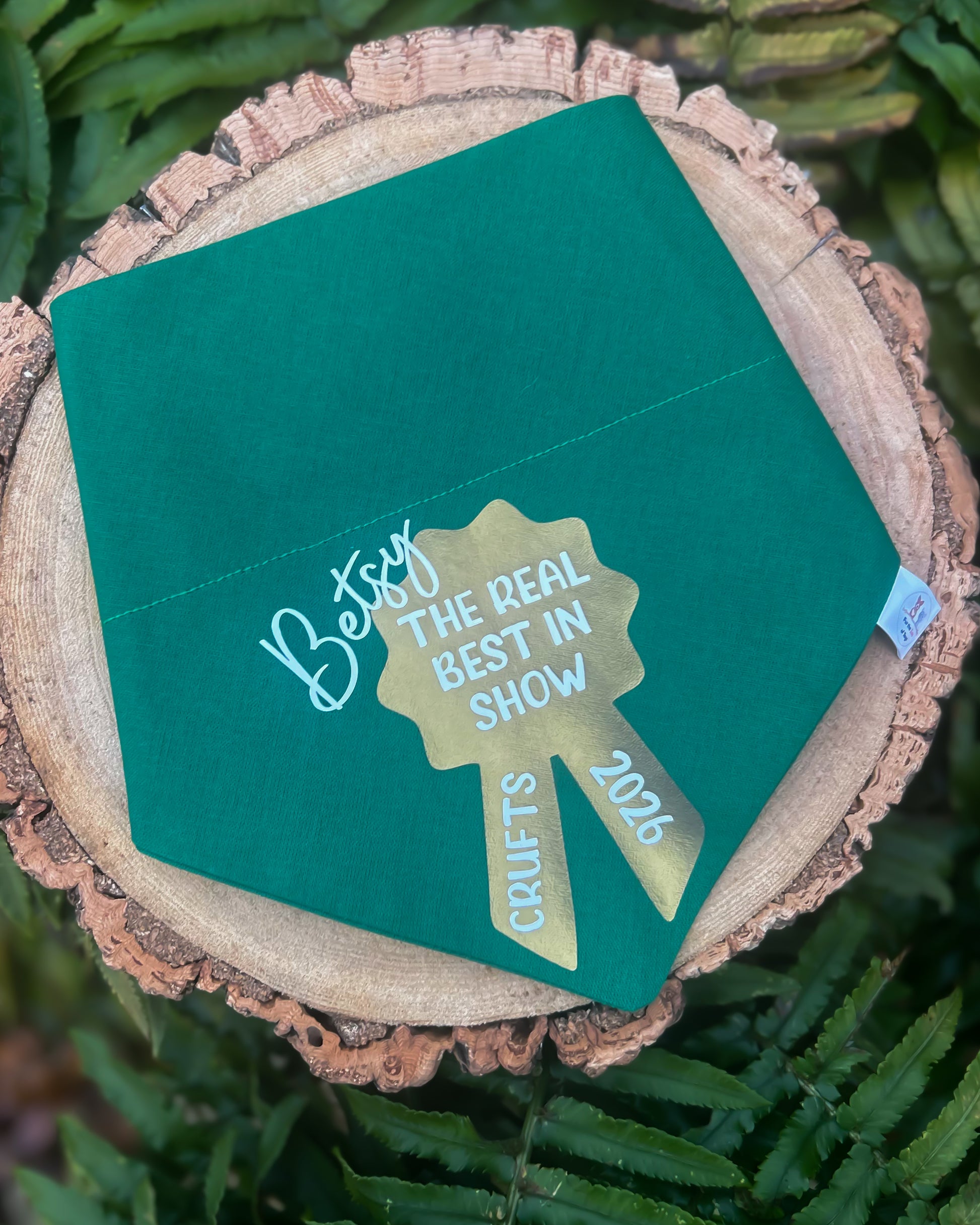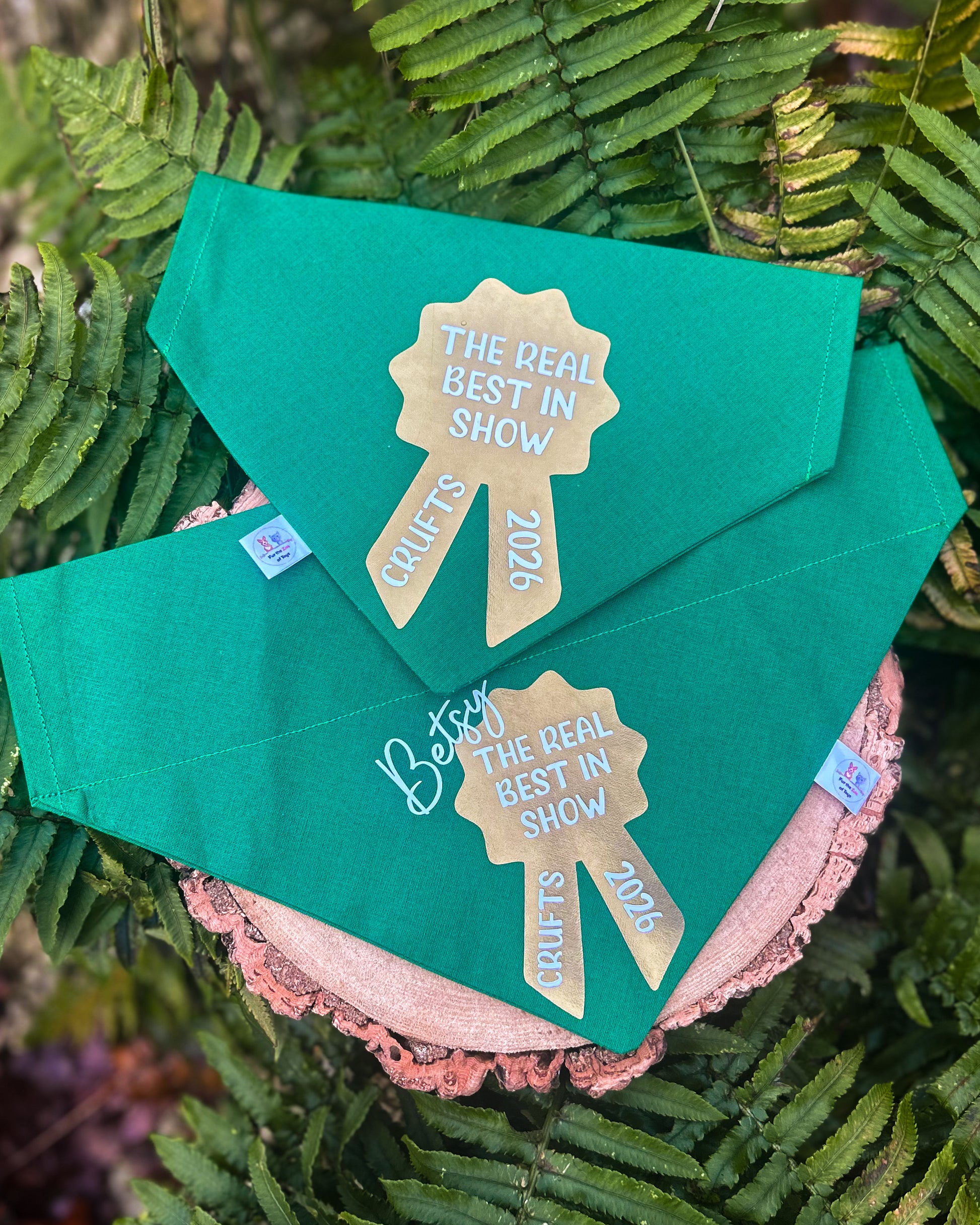 Our Crufts “The Real Best In Show” bandanas sell out every year at the event and for the first time we are releasing these in advance of Crufts so you can order your own personalised ones.
