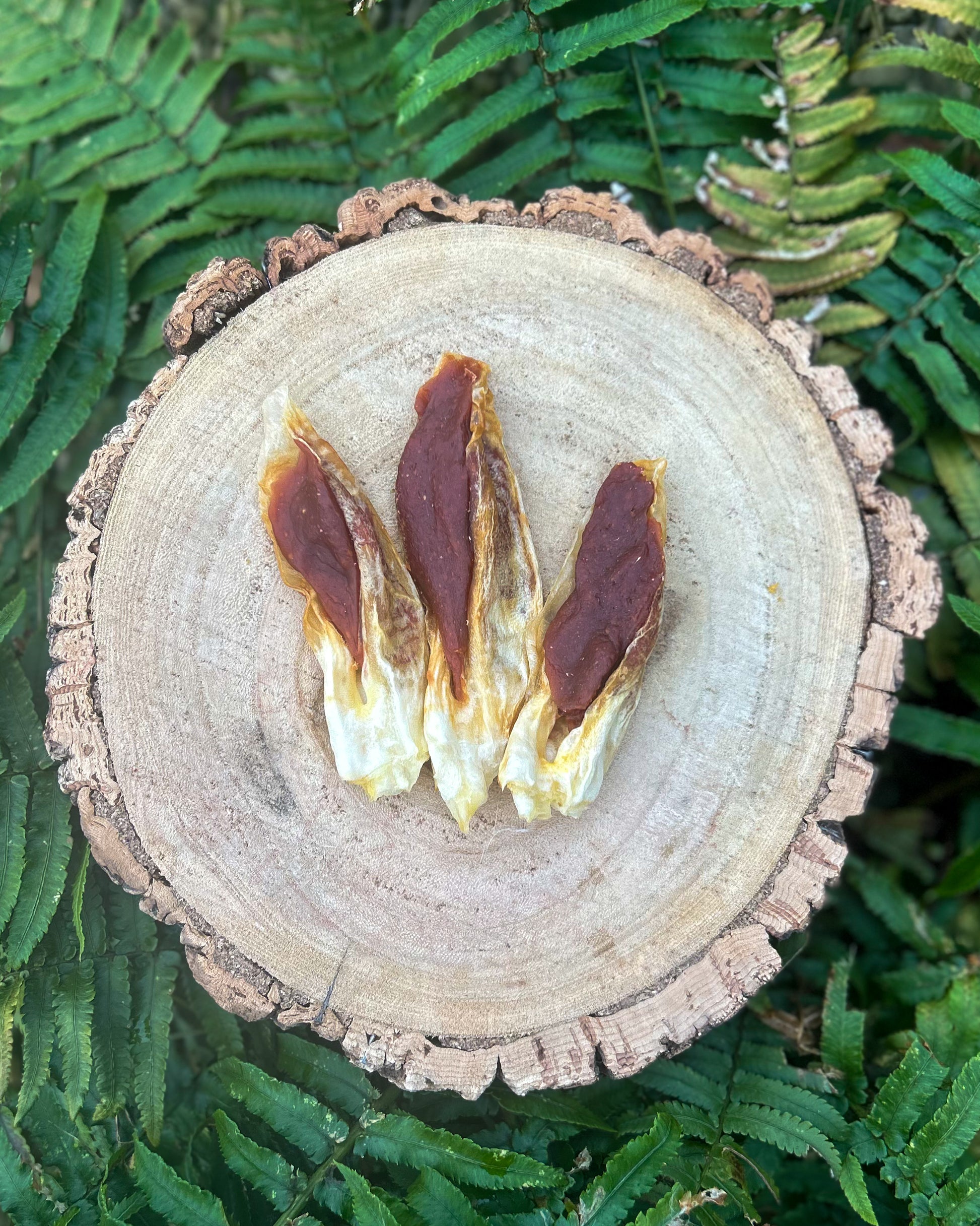 Rabbit ears with lamb are a high protein treat. They are a low-fat protein source – great for allergies, supporting muscle, joint health. Making them nutritious, hypoallergenic, and satisfying treats for your dog.