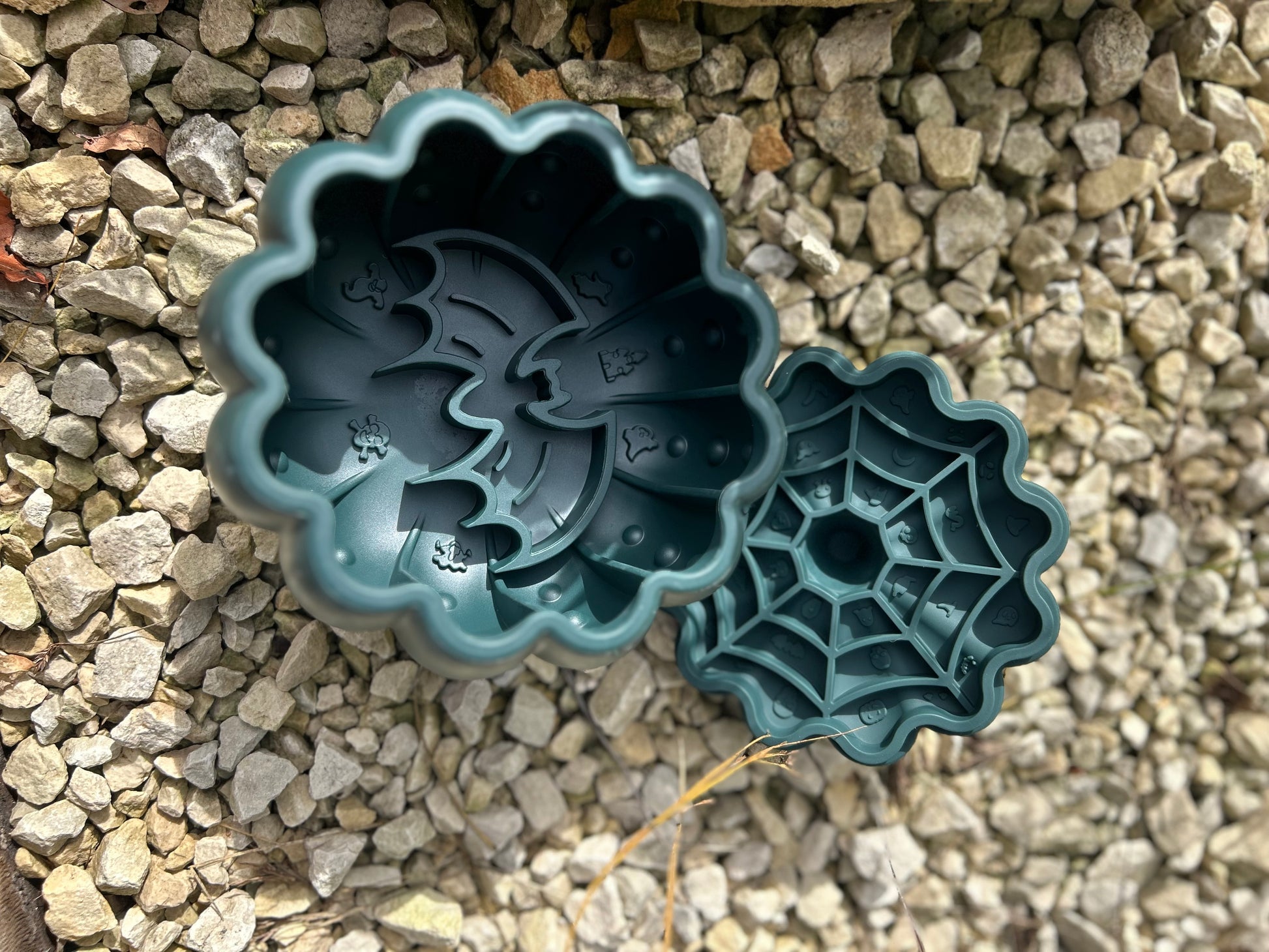 Fill the bowl with you pups spookiest tea while your pup works around bas and ghosts to get their food out!